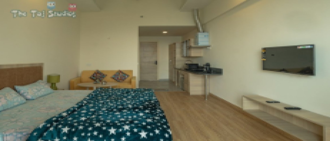 Curious about what makes Taj Suites & Studio so weirdly wonderful ? Live like a local and find out yourself at our new fully equipped one bedroom apartment. Comfortably blending modern conveniences with tastefully designed, the apartment at skyscraper and within a Mall, you get all Brands, Food, Supermart etc. Bathroom with shower and hot water, Balcony and Kitchen. TV with OTT & all international Channels, AC and a private bathroom.