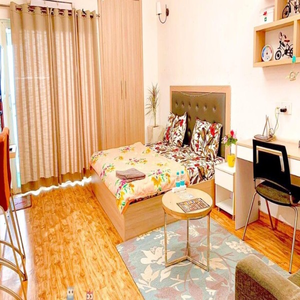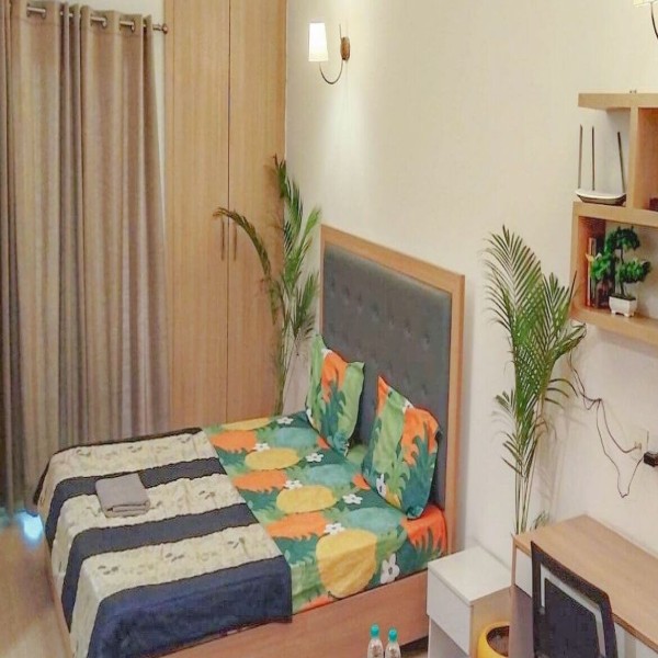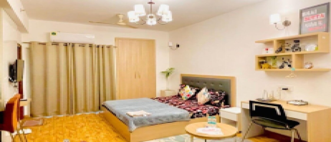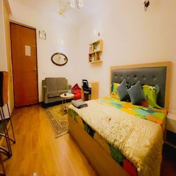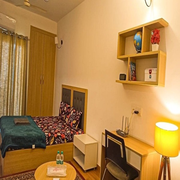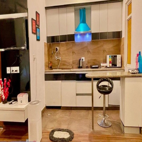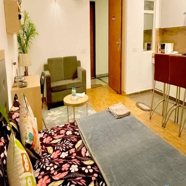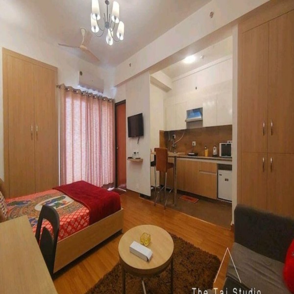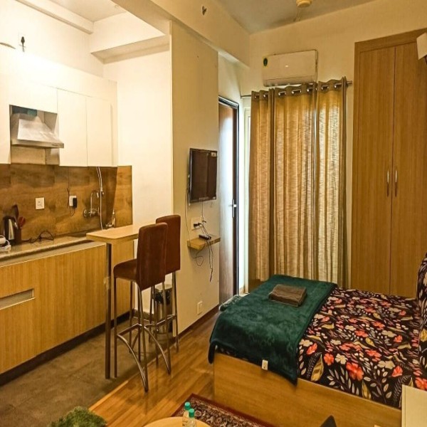 “An tastefully inspired boutique Independent and private Studio serviced apartment with a large balcony, Kitchen and neat and clean bathroom. The Studio apartment comes with amenity kits, wifi, fully equipped kitchen,Split AC, RO,Microwave,Fridge,TV making it the perfect oasis for a business trip or even a leisurely getaway. The Health Club, Swimming Pool, Salon are all within the complex. The Goldenpalm is a gated community with a 24 hour security and safety Team.”